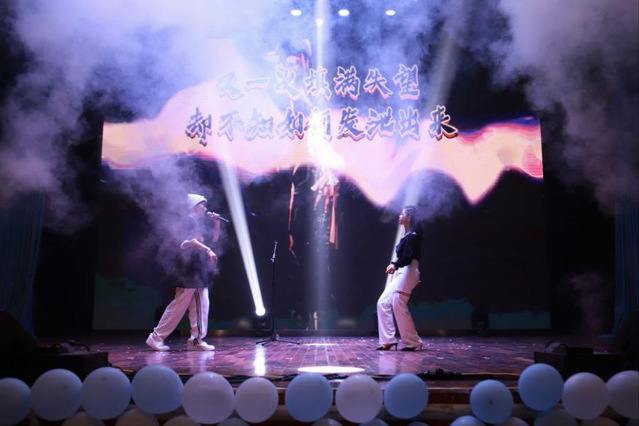 图为肖小铁、姚婧灵带来的原创说唱《蔚来》