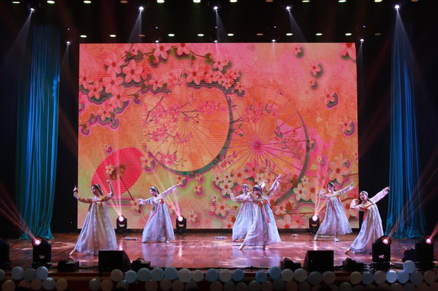 图为黄山、段万一、李娜、徐倩等同学带来的舞蹈《繁花》