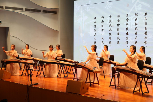 我院古筝专业的学生们在此次音乐会上,以饱满的热情为观众精彩演绎了原创筝曲《春分》。