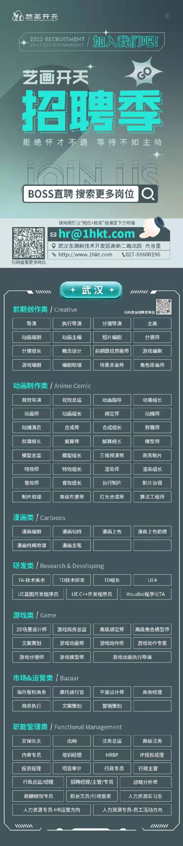 (本网讯 通讯员:聂刚刚 )武汉艺画开天文化传播有限公司(英文名称:YHKT ENTERTAINMENT)成立于2015年5月,是一家以精品原创动画作为切入点进行IP全产业链运营的泛娱乐公司。公司以IP为核心进行粉丝文化的构建,通过游戏、影视、文学、漫画、衍生品等领域进行泛娱乐产业的打造。