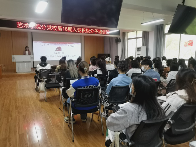 本网讯 (通讯员 王红艳 黄玉婷)2022年4月4日中午12:30,中共湖北第二师范学院党校第265期艺术学院分党校第16期入党积极分子培训班开班仪式暨党课第一讲在九号楼9210教室顺利举行。艺术学院党委书记雷静和、党委副书记夏永祥、党委委员、学生第一党支部书记李京、学生第一党支部副书记李昕玥,学生第二党支部副书记邓佳颖以及本次入党积极分子培训班全体学员参加了此次会议。会议由艺术学院第二党支部书记王红艳主持。