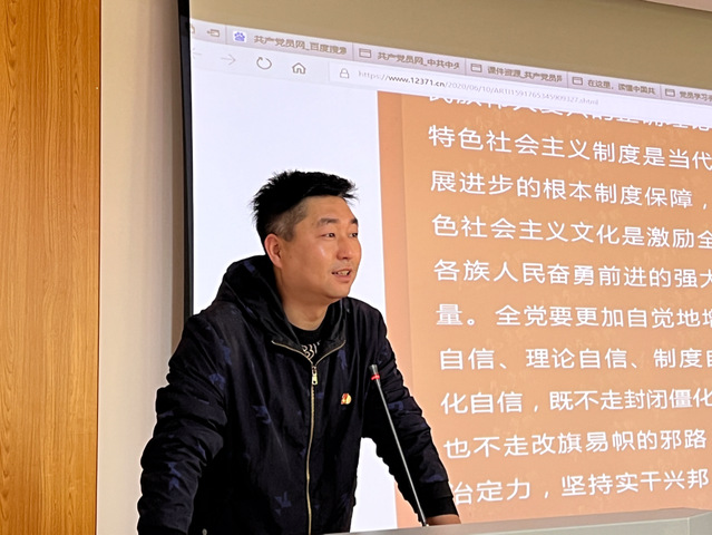 课程开始,李京书记向同学们介绍了共产党员官网,带领同学们详细了解党员使用手册,便于全体入党积极分子学习和认识党的基本理论,履行党员的义务。随后,李书记就《党员使用手册》中的109条理论展开重点讲解,其中包括“四个意识”、“四个自信”、“两个确立”、“两个维护”等内容的普及。
