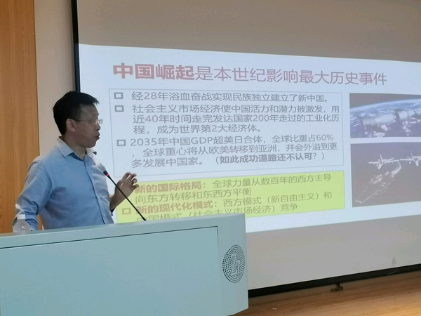 其次乐书记结合当今世界局势谈到,我们正处于百年未有之大变局的风口浪尖,身为共产党的接班人,我们应该坚持中国共产党的领导,我们坚信,有中国共产党成立百年创造辉煌业绩提供的重要条件,有以习近平同志为核心的党中央坚强领导,有习近平新时代中国特色社会主义思想科学指引,有全党全国各族人民团结奋斗,我们党和国家一定能积极应对和有力驾驭百年未有之大变局,实现中华民族伟大复兴宏伟目标。