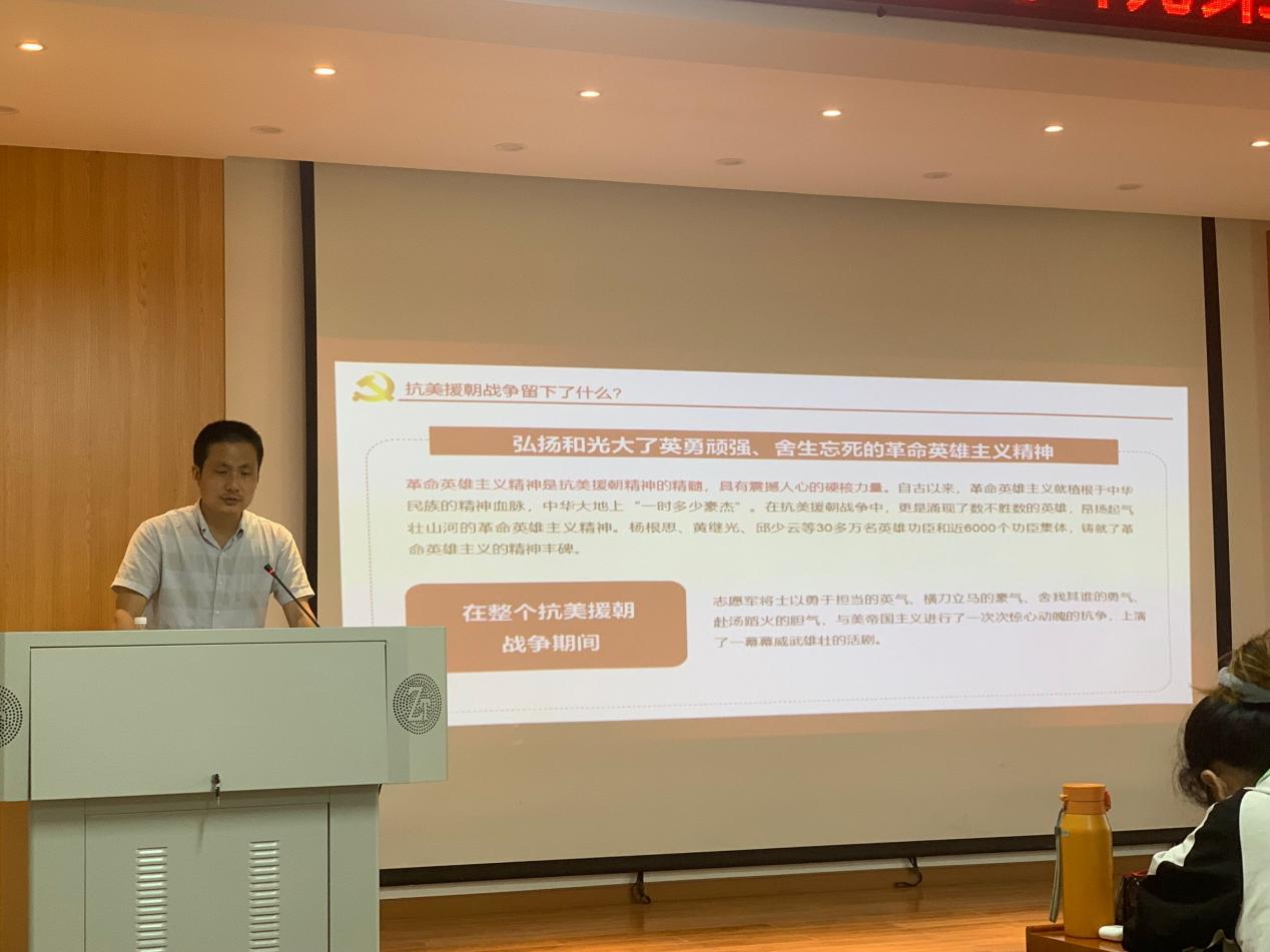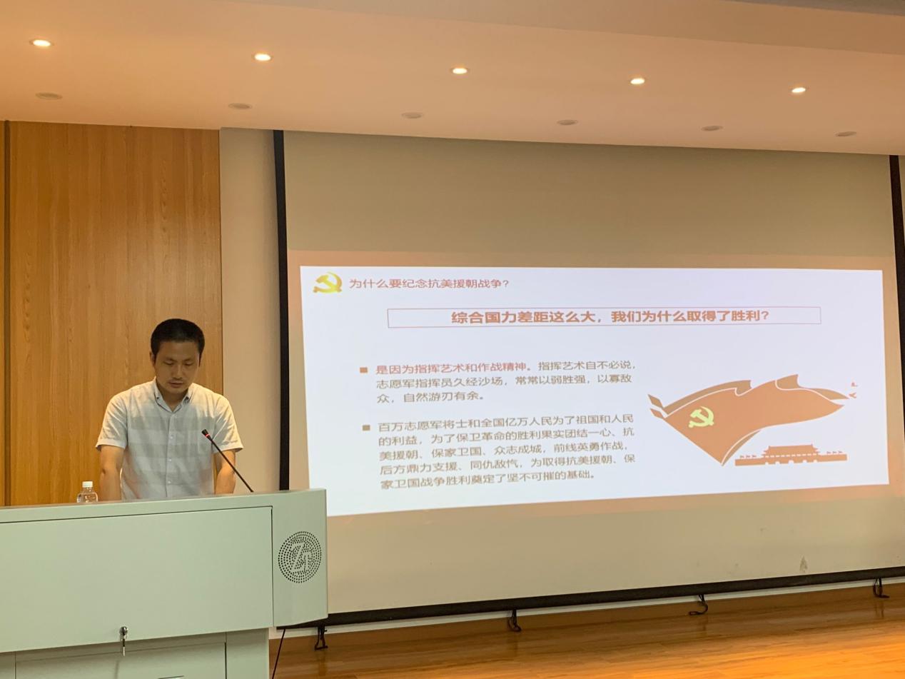 本次党课通过欧阳杰老师的深切讲述,让大家深刻体会到了中国人民志愿军前辈不怕牺牲、不畏艰险、英勇斗争的伟大精神,也不断提醒当下的我们要铭记抗美援朝战争的伟大胜利,铭记革命前辈的英勇斗争,将抗美援朝精神内化为新时代奋勇前进的动力,切实担负起党和人民赋予的责任与使命。