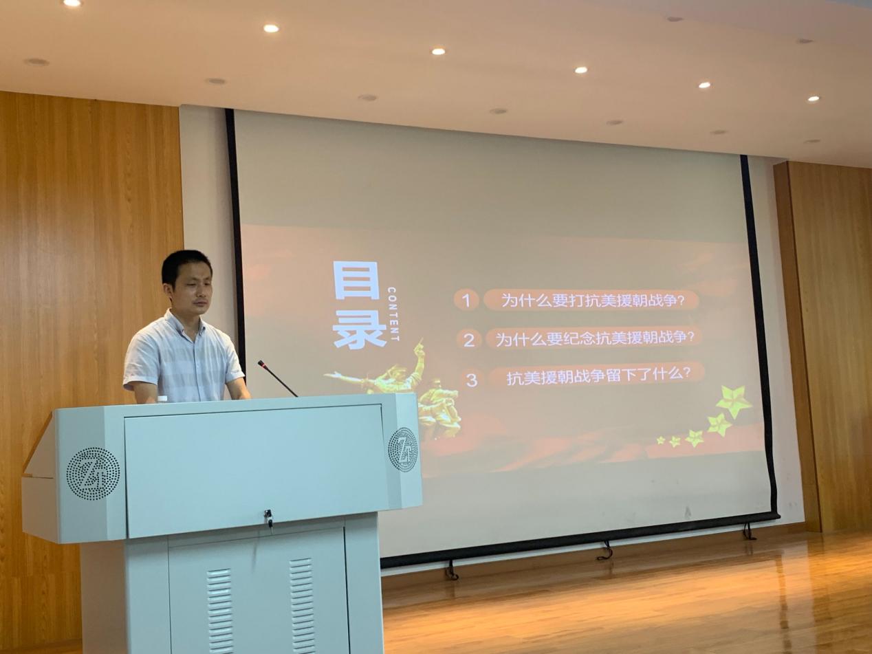 (图2.3欧阳杰老师讲述伟大抗美援朝精神的深刻内涵和现实意义)