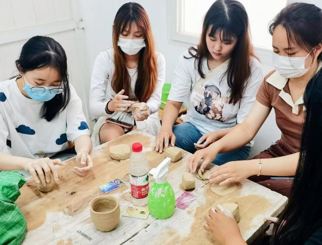 团队成员自己动手制作器皿