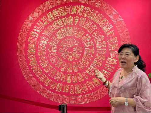 天行志愿服务队来到大冶市尹家湖畔边的刘小红刺绣艺术馆,步入馆中,迎面而来的大红《百福图》一下就吸引了大家的目光。刘老师亲自为我们讲解这幅图:百福图是由100种不同的篆体“福”字组成,有钱币串成的多财之“福”;有鱼纹组成的富余之“福”;有田与房构成的温馨之“福”,福字图案是诸事皆吉的总称。刘小红代表作《星云之梦》荣获第三届中国(潍坊)民间艺术博览会金奖,作品在2016年跟随神舟十一号飞船遨游太空,这是中国非遗刺绣作品首次在太空中展示。七彩星云组成“60”字样,象征着中国航天事业60年峥嵘岁月;深邃旋转的星云引向浩瀚太空,寓意着航天探索永无止境,将对航天事业的美好祝愿和博大精深的中华文化有机融合。