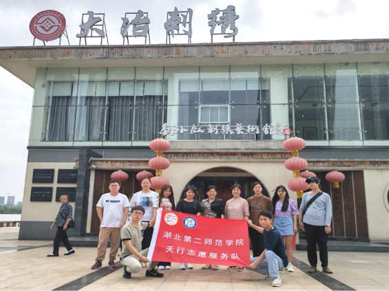 图1天行志愿服务队与传承人刘小红在刺绣艺术馆前合影