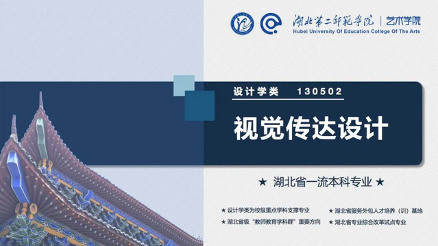 湖北第二学院视觉传达设计专业始建于1949年的湖北省教育学院艺术科,2003年本科面向全国招生,已为社会培养2000余名毕业生;2015年被遴选为“湖北省专业综合改革试点专业”、湖北省级特色学科群“教师教育”重要方向、2020年评为湖北省一流本科专业;2021年依托武汉科技大学招收联培硕士研究生。本专业秉承学院坚持“立足武汉,面向湖北,辐射全国,服务区域经济社会”发展方针,聚焦荆楚文化、培养德智体美劳全面发展,具国际视野、视觉传达设计理论坚实,具创新设计能力及教育教学综合素养,适应新时代荆楚文创设计及美术基础教育特色定位的复合型视觉传达设计应用人才。