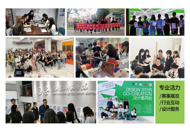 视觉传达设计专业,突出“双师(视觉设计师+教师)“”“双证(毕业证+教师证)”育人优势,以人才培养质量为核心,适应“双师”职业岗位需要,加强产教深度融合、校企协同、创新创业融入,深化教学改革;注重课堂与讲台、展台、平台、市场的结合,打造集实训、竞赛、社会服务一体的全方位培养“双师”特色视觉传达设计人才。