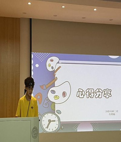 接下来,寒假队、暑期鄂州队、荆州队代表分别上台给大家分享实践中的点滴。优秀志愿者肖博瀚以寒假期间将动画创意用于孩子的美术培训例子讲述了自己在贵州开展寒假实践中的收获。暑期鄂州队代表李赵芮,展示了自己所带领的舞蹈专业志愿者在杏福农业园寻找创意灵感,创作情境舞蹈的画面,还播放了一段在稻谷上面展示的具有功夫意蕴、道法自然的舞蹈视频,她说艺术源于生活,这次实践活动让同学们对艺术与生活的理解更加深刻。