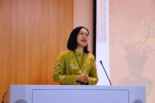 讲座伊始,韩莹莹老师建议同学们放下手机,专心投入这场以体验为主的讲座。随后,她分别讲述了中国传统文人雅士的四种生活美学——点茶、插花、焚香、挂画。“品茶以益心,观花以养心,闻香以静心,赏画以润心。”通过展示书画作品、播放短视频等形式,更好地调动听众的积极性,使学生从视觉、听觉等多个角度领略了中国传统文化中的生活美学。