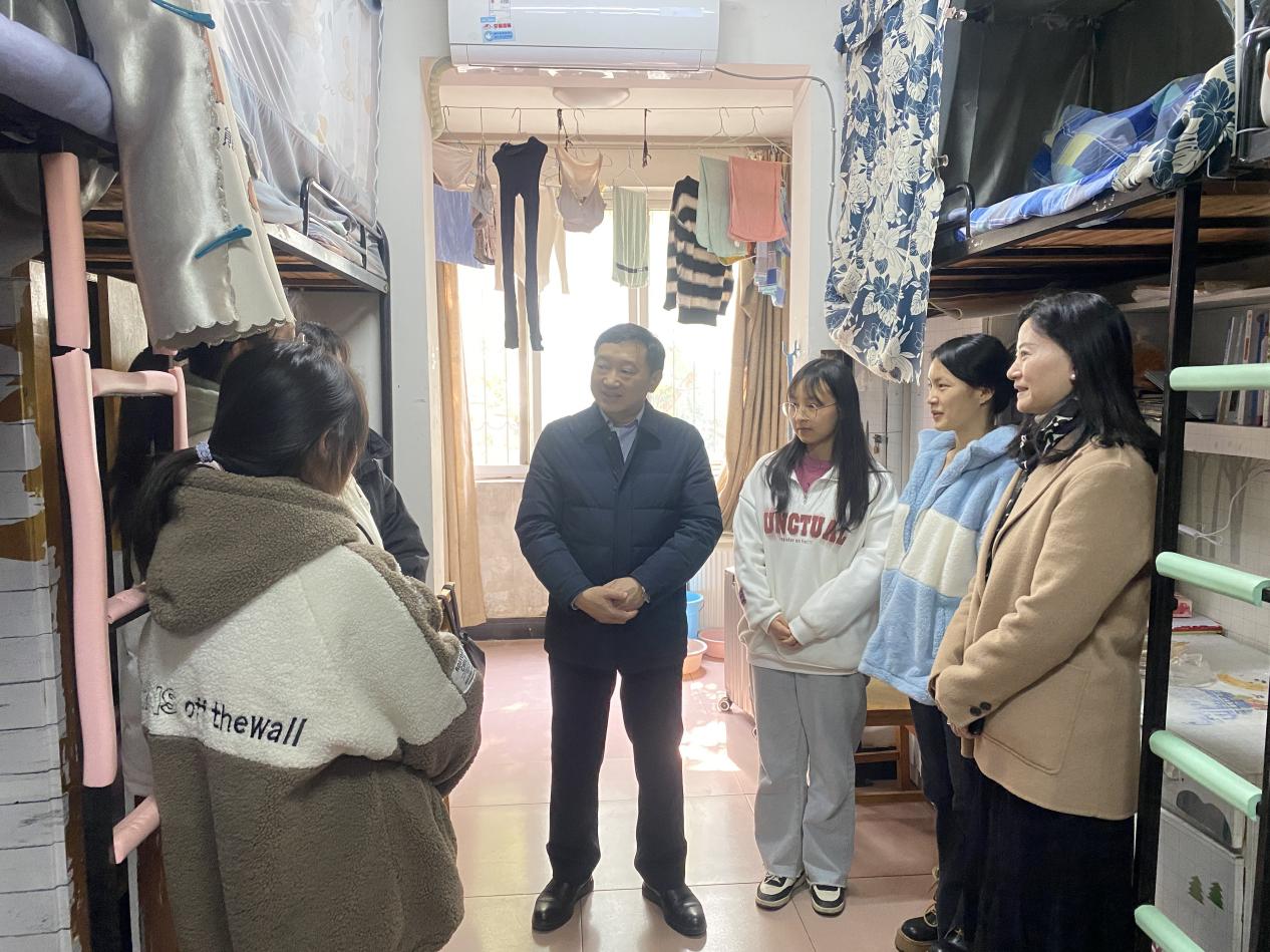 走访过程中,副校长田恒平为同学们送去了新春的问候,关切地询问同学们寒假的学习生活情况、健康状况,认真倾听学生对课堂教学、实践教育、食堂服务、任课教师和辅导员工作等方面的反馈。