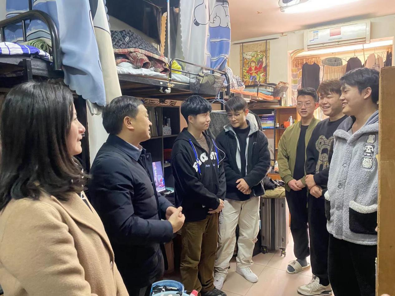 走访过程中,副校长田恒平为同学们送去了新春的问候,关切地询问同学们寒假的学习生活情况、健康状况,认真倾听学生对课堂教学、实践教育、食堂服务、任课教师和辅导员工作等方面的反馈。