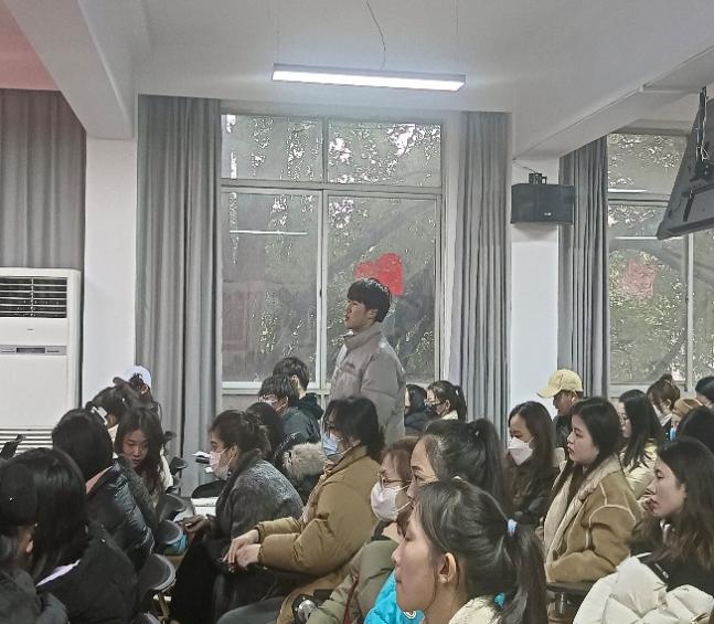 王红艳老师带领大家集中讨论学习发言——结合二十大学习,围绕开学第一课上郑军校长提出的“责任”、“激情”、“奋进”三个关键词谈理解,谈心得。讨论主题中党员同志们认真思考积极发言。