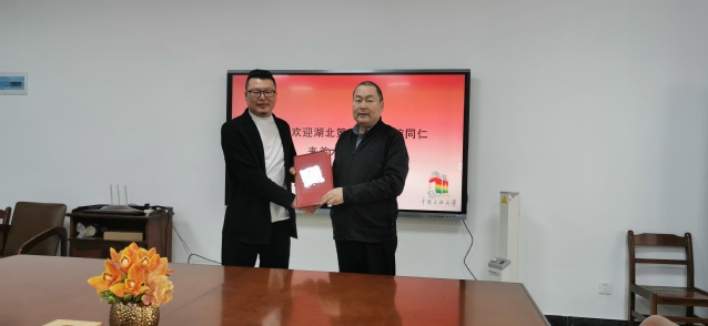 吴海广院长首先对湖北第二师范学院艺术学院领导的来访表示热烈欢迎,对中南民族大学美术学院在学科发展、专业建设及硕博布局作了简要介绍。吴院长表示,今天的活动是在2022年双方学院签订“硕士研究生实习实践基地”协议的基础上开展的,双方学院的学科、专业及教师交流互访方面多年一直在合作并已经开展了很多活动。