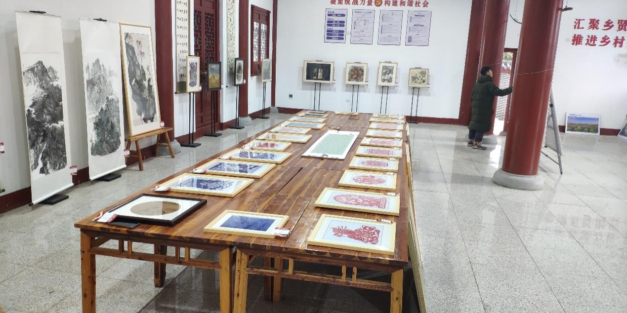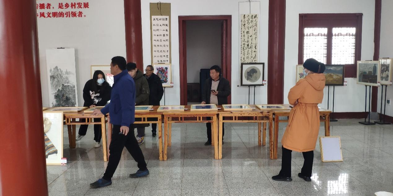 本网讯(通讯员王超)3月22日,艺术学院在学校乡村振兴帮扶点孝昌县陡山乡陆东村老年活动中心举办“礼赞新时代 奋进新征程”送艺下乡美术作品展。