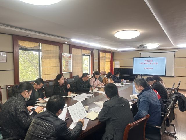 本网讯(通讯员 王佩)2023年3月27日下午,艺术学院在三楼会议室召开了中层干部月度工作会。会议由院长金波同志主持,班子成员,三办主任,各中心、各系主任参加会议。