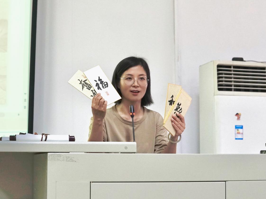 正式开讲前,官彬手上的书法作品吸引了同学们的注意。为让此次讲座内容更深入人心,她特地准备了问答互动环节,回答正确的同学可以获得她亲自书写的作品。