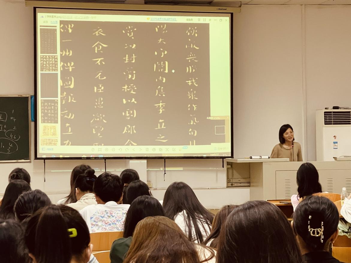 期间,学生们的目光被一幅幅传世书法作品所吸引,仔细聆听课堂内容,并踊跃回答问题。“此前我从未了解过钟繇,今天欣赏的作品给我一种刚劲有力、神采飞扬的感觉,讲座内容令人受益匪浅的同时给人一种美妙的视觉体验。”新闻与传播学院一名同学说。