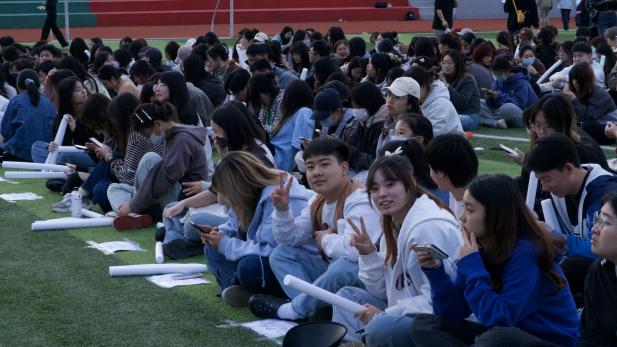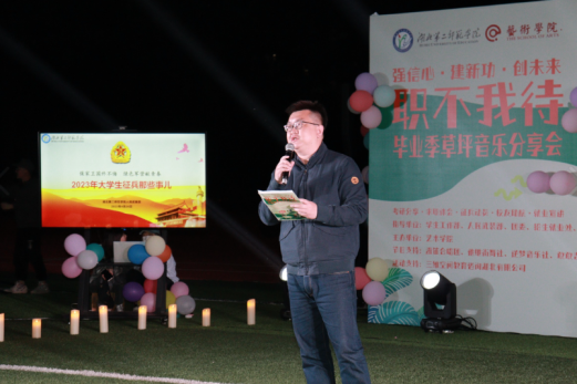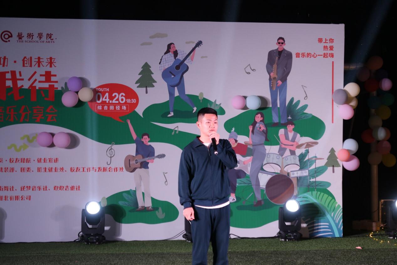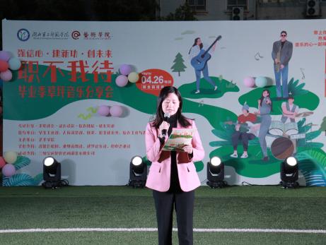 本网讯(通讯员 黄玉婷、聂刚刚)4月27日19:00,艺术学院“强信心·建新功·创未来”:职不我待——毕业季草坪音乐分享会在综合田径场举办。校团委书记刘锐、保卫部部长吴健、招生就业处处长刘儒国,校友工作与发展合作处副处长周静,人民武装部国防教育科王骏,艺术学院党委书记章倩,党委副书记邵玲,全体辅导员及毕业生代表、校友代表和学院各年级500余名同学参加。