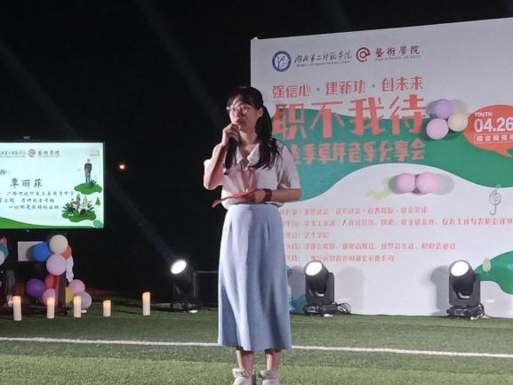 艺术学院党委书记章倩致辞,鼓励同学们在校期间努力学习,尽早规划,精准定位,稳步出发,同时要提高站位、拓宽视野,努力提升自己的核心竞争力,为未来的求职就业路打下坚实基础。