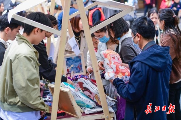 长江日报大武汉客户端5月2日讯 连日来,湖北第二师范学院艺术学院的赵狄艺、余果、葛清雅、黄维等7名大四学生的200多件毕业设计作品,在黄鹤楼举办的“湖北文创市集·黄鹤楼”中,经过3天的“摆摊”销售,受到游客的特别关爱,销售一空。