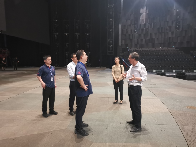 大家来到了汉秀剧场B1圆厅,在这里观看了汉秀演出的精彩视频,对汉秀有了更深度的了解。唐教授向同学们总结道:今天同学们看到了世界500强企业的真实工作环境于流程,深入的了解到一场精彩的艺术表演幕后复杂的准备工作,今天的活动一场艺术教育的“现场课”,希望同学们能学习到汉秀每位劳动者的敬业精神,同时我们与汉秀双方在探讨发展合作意向,学校也在为同学们积极联系到汉秀实习的机会。