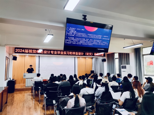 5月30日中午在9210教室举行2024届视觉传达设计专业毕业实习和毕业设计(论文)动员会,会议宗旨在向学生介绍毕业实习和毕业设计(论文)的相关要求和流程。本次动员会由谈飞副主任主持,目的是帮助学生更好地理解毕业实习和毕业设计(论文)的重要性,并为他们提供充分的指导和支持。