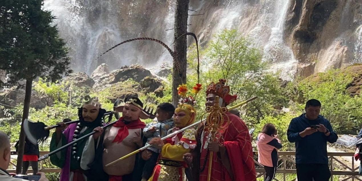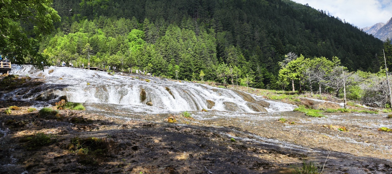 达诺日朗大瀑布是九寨沟那个" y "字型山的沟谷地的中心"瀑布会所"。电视剧《西游记》中孙悟空、他的师弟们和师父一齐走过瀑布的一幕就是在这里拍摄的。