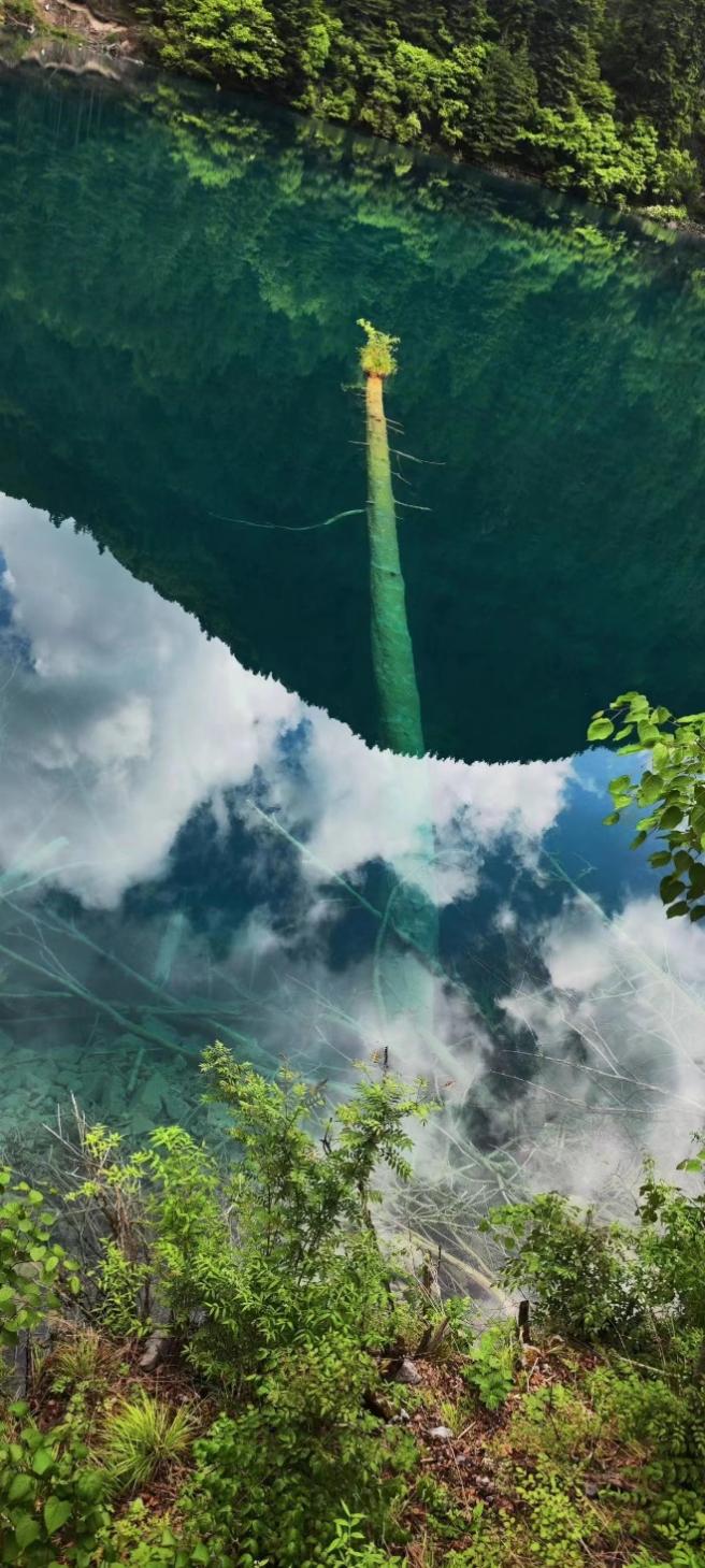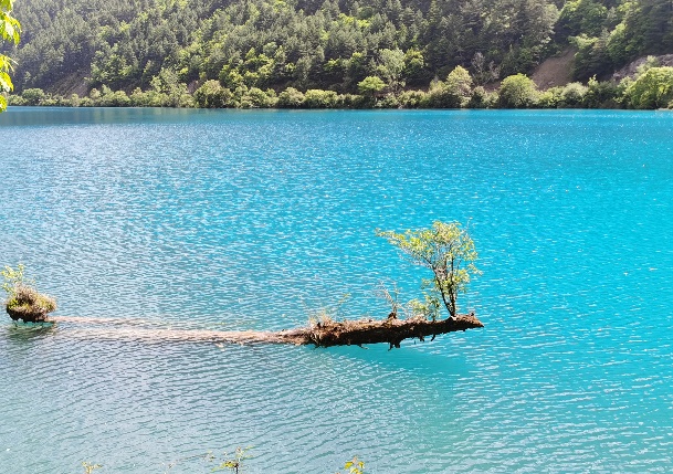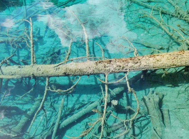 在整个九寨沟里,最奇特的那就是水中的树了。与其他环境下的树不一样,它们在水中千姿百态,用不同的方式顽强的生长着,带给游人无限的惊叹。它们适应环境的能力之强,让我为之倾倒、敬仰。树干长年累月浸在水中,它的独特之处是不但不会腐烂,而且还在树枝上长出千奇百怪的钙化物来。形成另外一种奇特的景观。