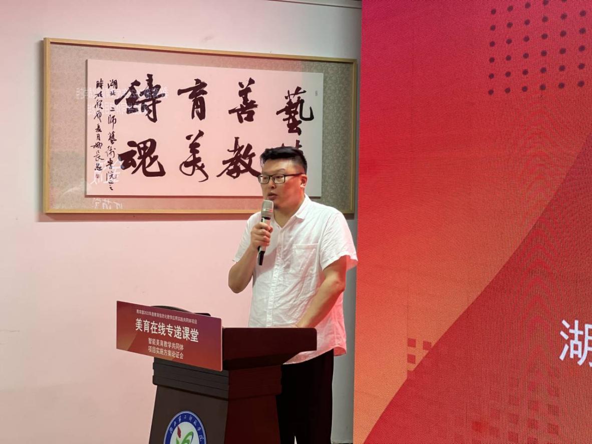 (通讯员 寇琰 娄冬)2023629日下午,由教育部科学技术与信息化司主办,湖北第二师范学院牵头,湖北第二师范学院艺术学院、师范生美育实践研究中心承办,武汉市光谷实验中学、十堰市汉江路中心小学、上海市奉贤区肖塘中学等十二所成员单位参加的教育部 2022 年度教育信息化教学应用实践共同体项目“美育在线专递课堂”智能美育教学共同体项目实施方案论证会在艺术学院9210会议室举行。会议邀请了陕西师范大学美术学院冯民生教授,华中师范大学人工智能教育学部教师教育学院吴军其教授,武汉音乐学院胡军教授作为论证专家参会。湖北省教育信息化发展中心(湖北省电化教育馆)主任(馆长)田明华,湖北省教育信息化发展中心(湖北省电化教育馆)技术服务部部长刘华阳,副部长钟艳芬,湖北第二师范学院副校长田恒平教授,湖北第二师范学院科研处副处长李海雄副教授。艺术学院领导班子,共同体各成员单位代表,师范生美育实践研究中心各成员出席会议。会议由教育部教育技术与资源发展中心(中央电化教育馆)黄天元博士主持。