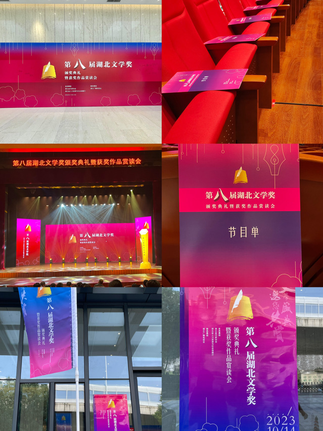 本网讯(通讯员 陈思)第八届湖北文学奖颁奖典礼暨获奖作品赏读会于2023年10月14日下午在湖北戏曲艺术中心(首义剧场)隆重举行。我院师生团队为此次活动的主要视觉设计,并受活动组委会邀请参加了典礼活动。