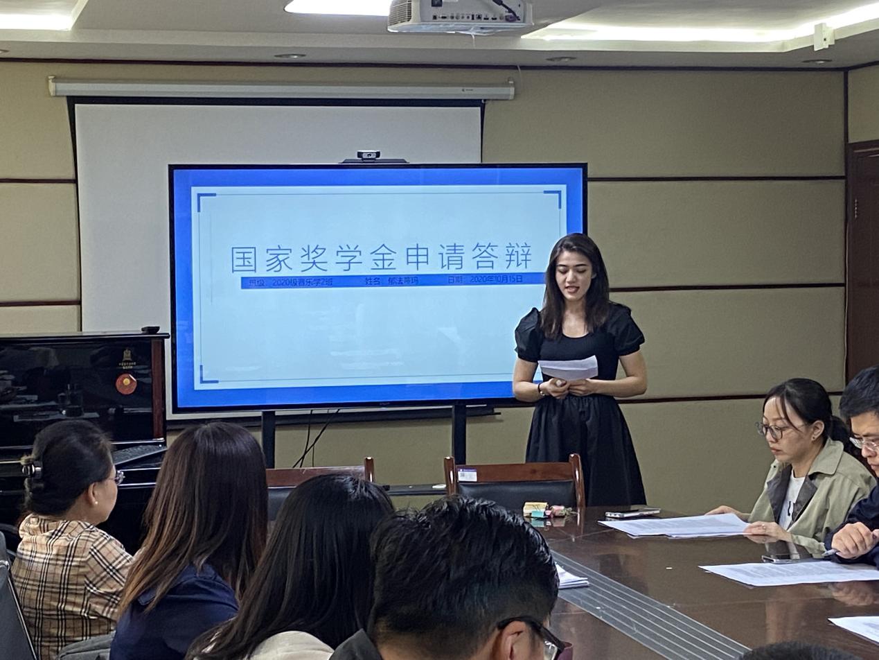 会议正式开始,邵玲书记会议中详细介绍了本次国家奖学金的评选标准、要求。国家奖学金评审委员会审议,并直言期待同学们表现。学生的发展离不开自我的认识,对于未来工作学习的规划,以及为社会贡献的决心。其后,各位候选人轮流上台答辩。