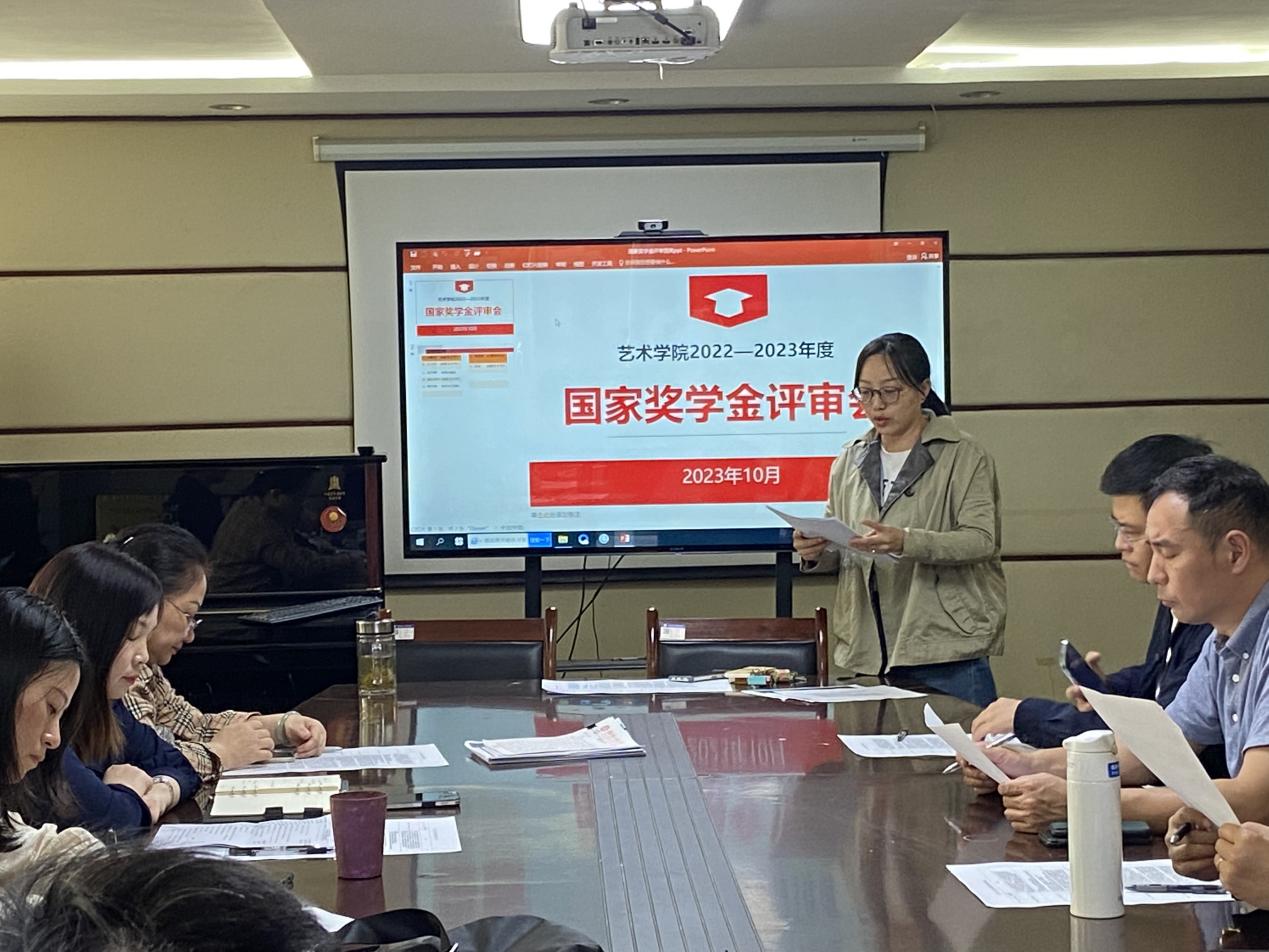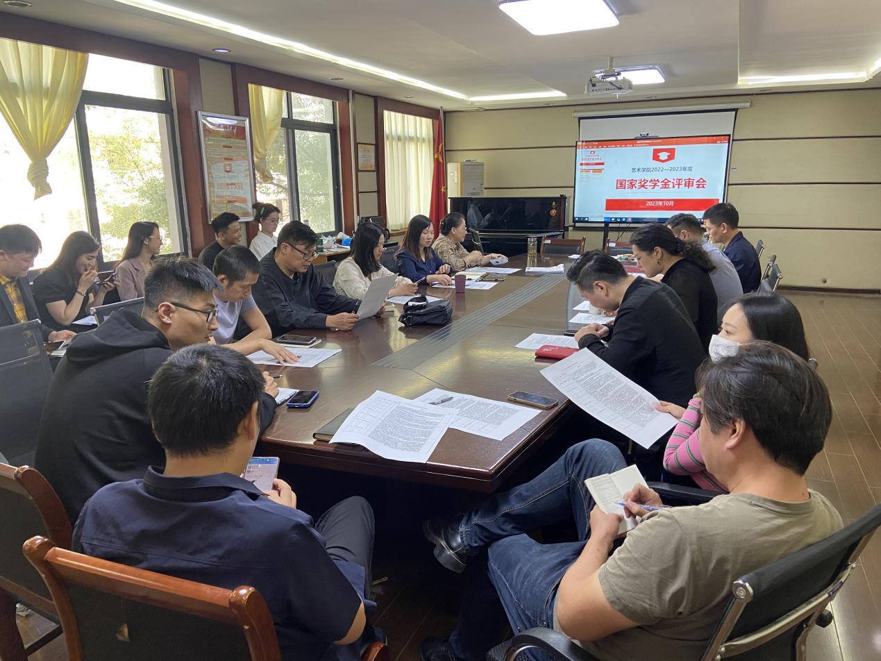 本网讯(通讯员 苏雨洁)为激励有志青年,争当优秀学子。湖北第二师范学院艺术学院2022—2023年度国家奖学金评审会于2023年10月10日中午13点在艺术楼三楼会议室举行。本次评审委员会是由艺术学院党委书记章倩,院长金波,党委副书记邵玲,副院长刘畅、赵文,分团委书记聂刚刚,各系主任,三办主任,全体辅导员和七名学生代表所出席。