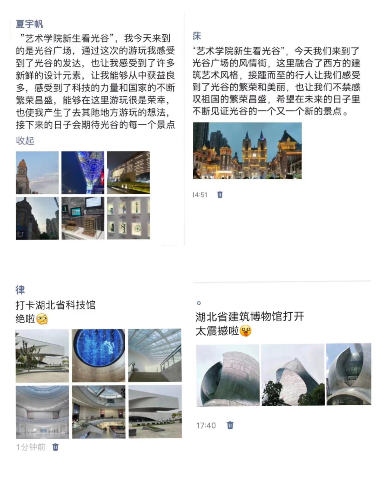 据悉,艺术学院“新生看光谷”教育实践活动还在持续进行,同学们还会继续参观走访、体验光谷,感受光谷无与伦比的魅力!