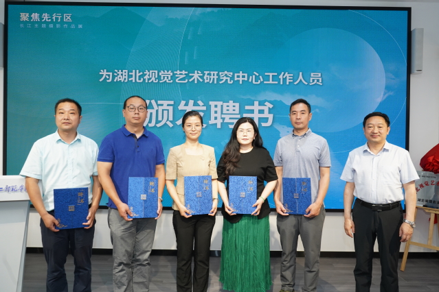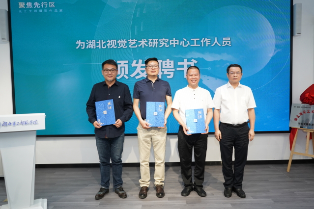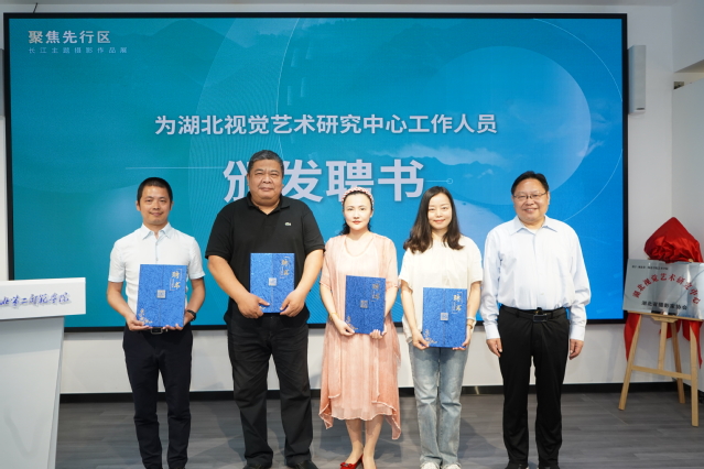 活动中,湖北第二师范学院艺术学院院长金波、湖北省摄影家协会主席杨发维共同签订中心共建协议,我校校长郑军、副校长田恒平与省文联副主席马尚云、省摄影家协会主席杨发维共同为湖北视觉艺术研究中心揭牌,共同见证重要时刻。随后,领导和嘉宾为湖北视觉艺术研究中心的学术委员及中心工作人员颁发聘书。