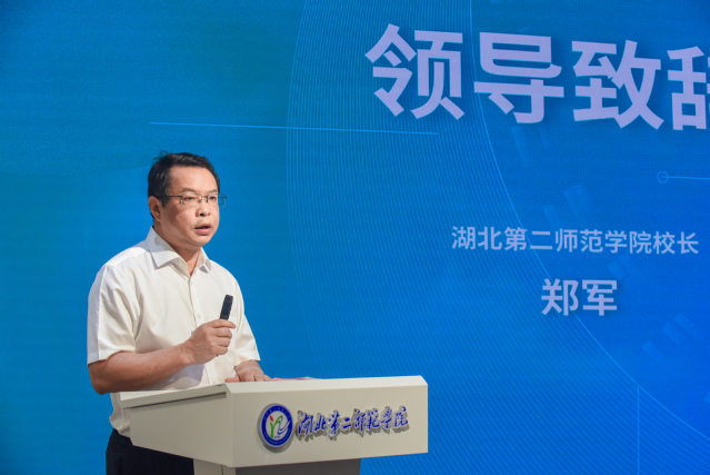 校长郑军在活动中致辞并宣布聚焦先行区——长江主题摄影作品展开幕。他表示湖北视觉艺术研究中心在我校成立,是省文联、省摄影家协会和学校在新时代践行新发展理念的生动体现,郑校长希望通过视觉艺术来传播和弘扬中华优秀传统文化,要用心用情讲好中国故事、湖北故事、二师故事。