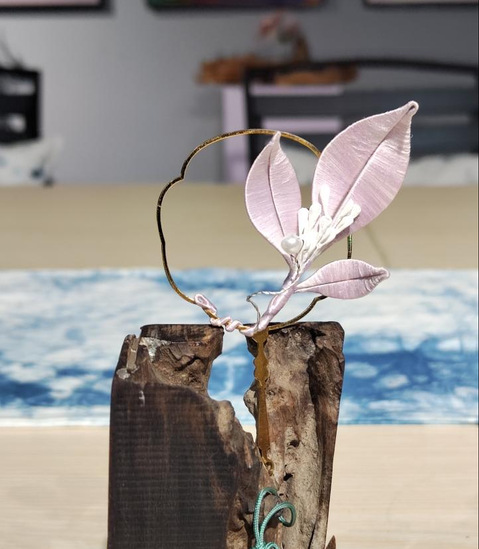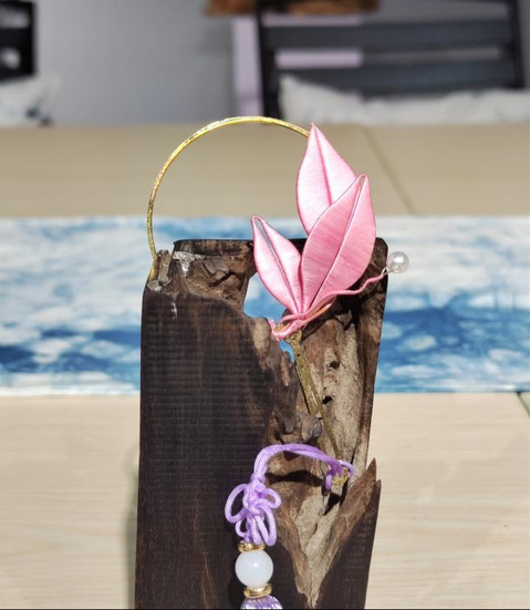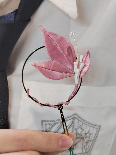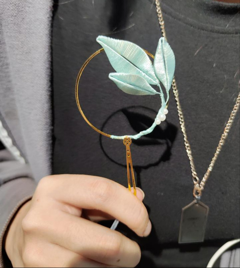 此次美育实践课上,同学们在老师和助教的带领下,学习非遗缠花知识,积极动手实践,开展交流互动,都一个个完成了自己的缠花作品。