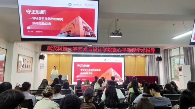 (通讯员 陈思)2024年10月17日下午,我院特邀武汉科技大学艺术与设计学院副院长袁心平教授指导人文社科学术成果奖申报及武汉科技大学考研指导。本次交流会参会有各系主任、学术骨干、青年博士等教师团队及意向报考武汉科技大学硕士研究生的在校生。会议由我院副院长赵文主持。