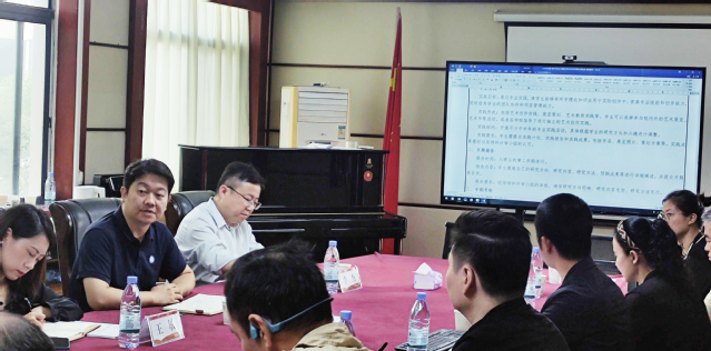 会议首先由艺术学院副院长赵文代学院院长金波教授汇报,首先对标教育部的申报标准,向全体参会人员详细汇报了美术与书法专业硕士点的申报进展。他全面介绍了核心师资队伍的构成、教学科研的成果以及所获得的荣誉等关键指标,并针对每位骨干教师的详细情况,提出了具体的后续工作计划。