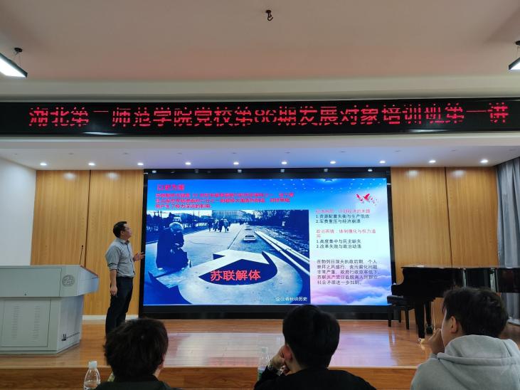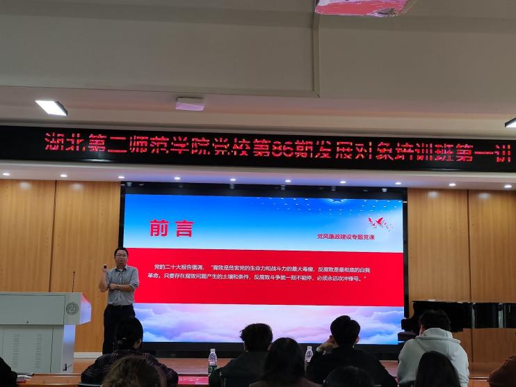 本网讯(通讯员:余秋月)深化学习精髓,汇聚前行力量。11月4日12时40分,湖北第二师范学院党校第86期发展对象培训班于9210教室拉开帷幕,首课由文学院党委副书记胡鹏主讲。