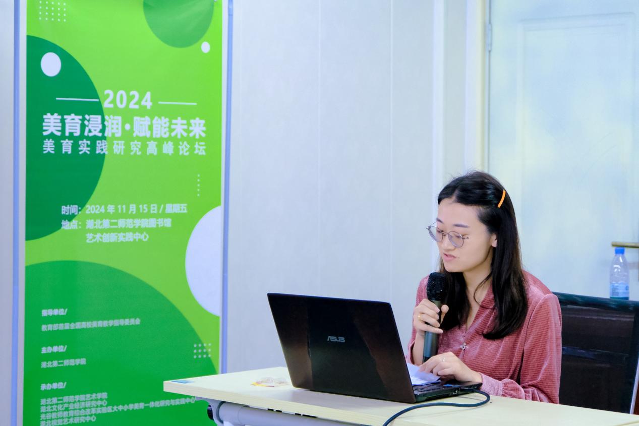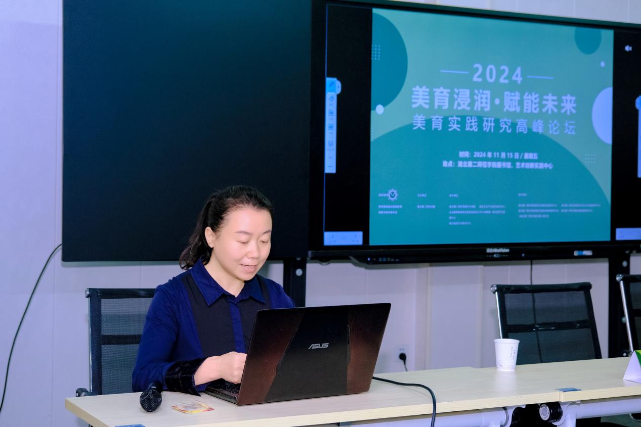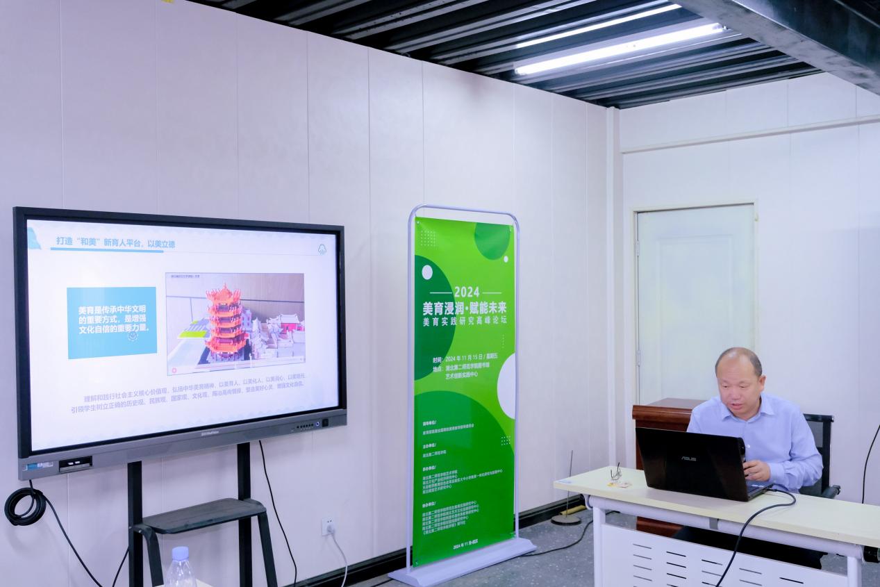 (通讯员 张珊珊)2024年11月15日下午,由湖北第二师范学院主办的“美育浸润·赋能未来”——2024全国美育实践研究高峰论坛继续深入进行。中小学美育论坛分会场主题发言由艺术学院副院长刘畅教授主持,武汉市光谷教育科学研究所小学美术教研员南红武老师担任评议专家。