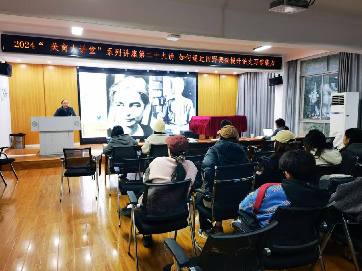 〔通讯员 何柳〕2024年11月19日,艺术学院迎来了一场别开生面的学术盛宴。贵州师范大学唐应龙教授受邀为全院师生带来了一场主题为“如何通过田野调查提升论文写作能力”的精彩讲座。此次讲座不仅吸引了众多艺术学子的关注,也吸引了学院教师的积极参与,现场座无虚席,气氛热烈。