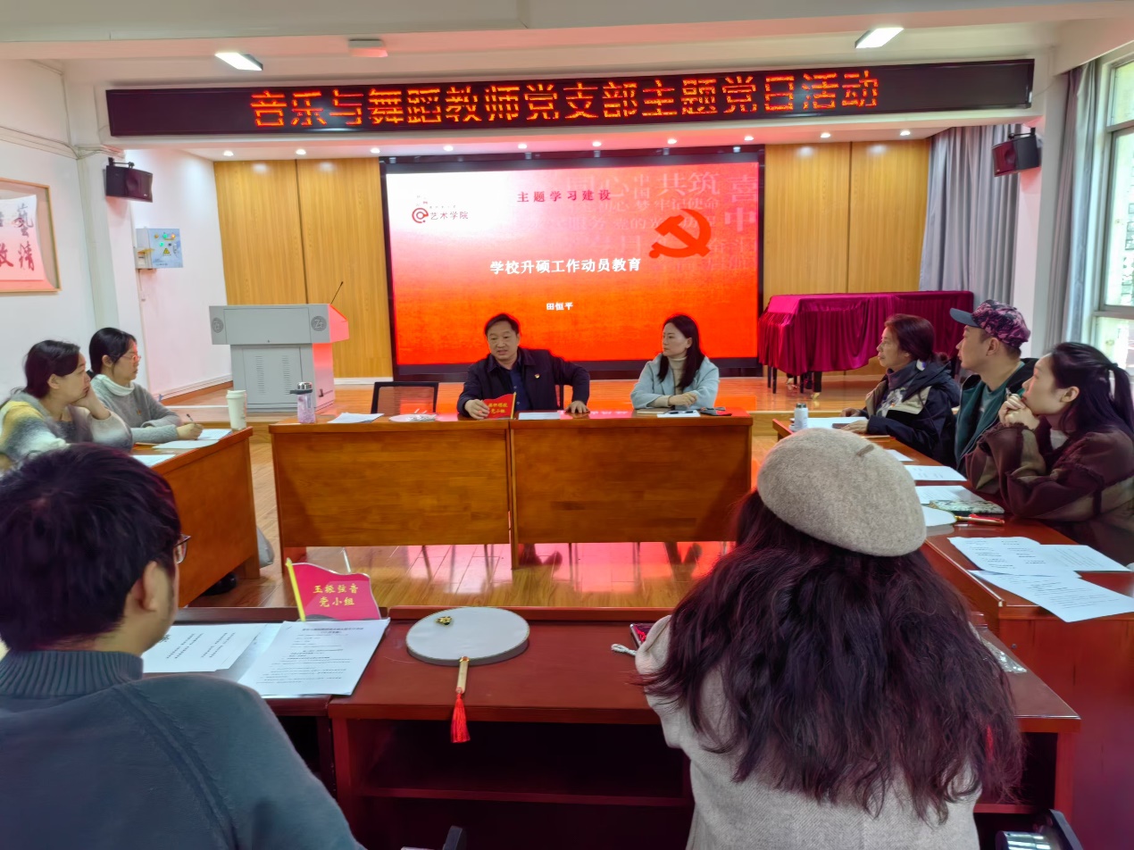 11月29日星期四下午13:00,音乐与舞蹈教师党支部在9号教学楼9210会议室召开了支部党员会议与十一月主题党日活动,党委常委、副校长田恒平,艺术学院党委书记章倩参加会议。