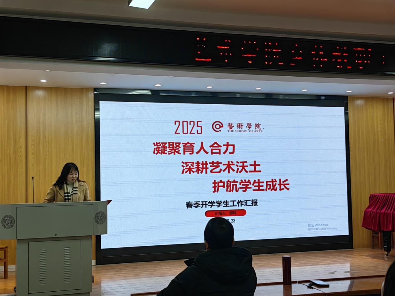党委副书记邵玲详细介绍了学生工作的各项情况,详细阐述了学生工作的指导思想和具体措施,提出了“凝聚育人合力,深耕艺术沃土,护航学生成长”的工作理念,强调要加强师德师风建设,形成全员育人、全过程育人、全方位育人的良好氛围。同时,还就2025年学生工作重点进行了谋划部署。