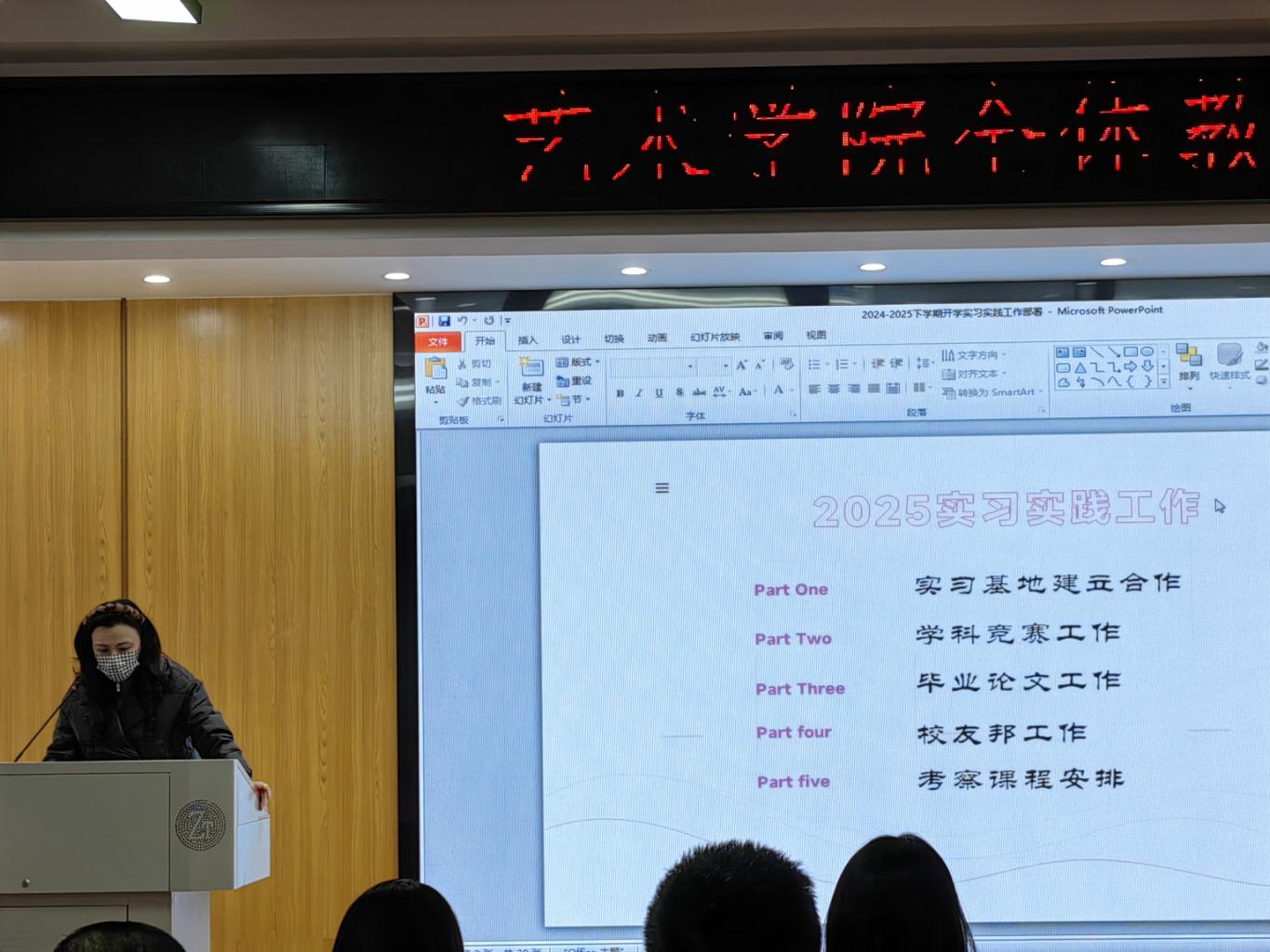 院长助理谢敏就2024年各系的实习实践和学生竞赛工作进行了总结,对2025年相关工作进行了安排部署。她详细介绍了实习基地建立合作、科学竞赛工作、毕业论文工作、校友邦工作以及课程安排等方面的内容,并提出了相应的工作要求和措施。她强调,实习实践是学生将理论知识与实践相结合的重要途径,要高度重视实习实践工作,为学生提供更多的实践机会和平台。