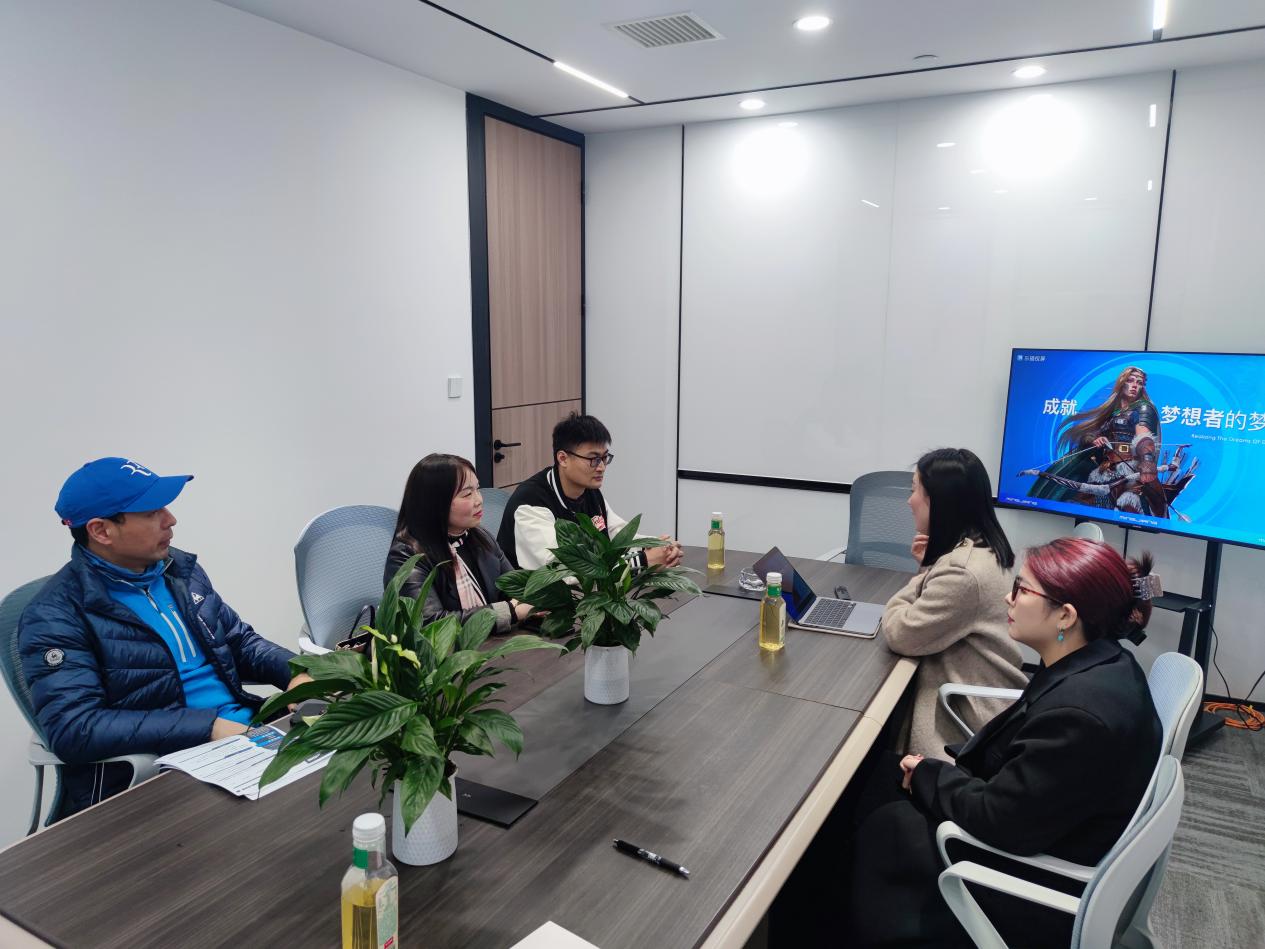 邵玲向企业介绍了艺术学院的专业设置、人才培养模式以及近年来取得的教育教学成果。付丹从专业角度出发,探讨了如何根据企业需求优化课程设置和人才培养模式,并现场推送了10名动画专业优秀毕业生求职简历。