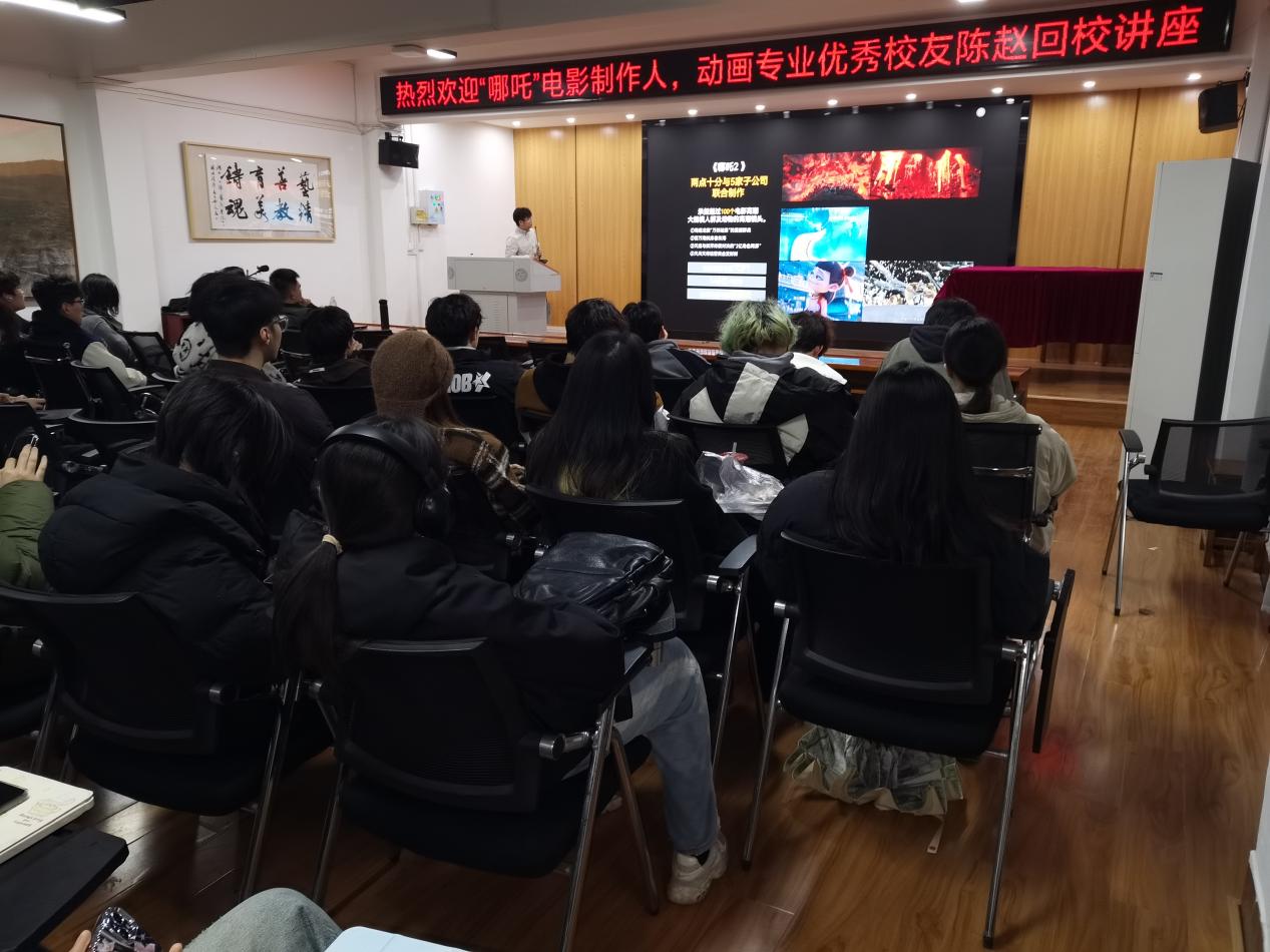 本网讯(通讯员 付丹)2025年3月14日下午,艺术学院学术报告厅座无虚席,05级动画专业杰出校友、现象级动画电影《哪吒之魔童降世》系列制作人之一陈赵先生重返母校,为师生带来题为"传统文化IP的数字化创新之路"的专题讲座。动画专业21、22、23、24级共120余名学生到场聆听。