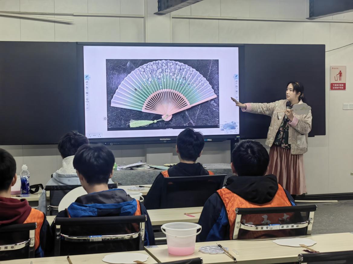 在东区美育中心,《墨笔扇上樱开》主题创作课,以独特的艺术视角,将传统笔墨与樱花意象巧妙融合在中国团扇上,展现东方美学的含蓄与雅致。